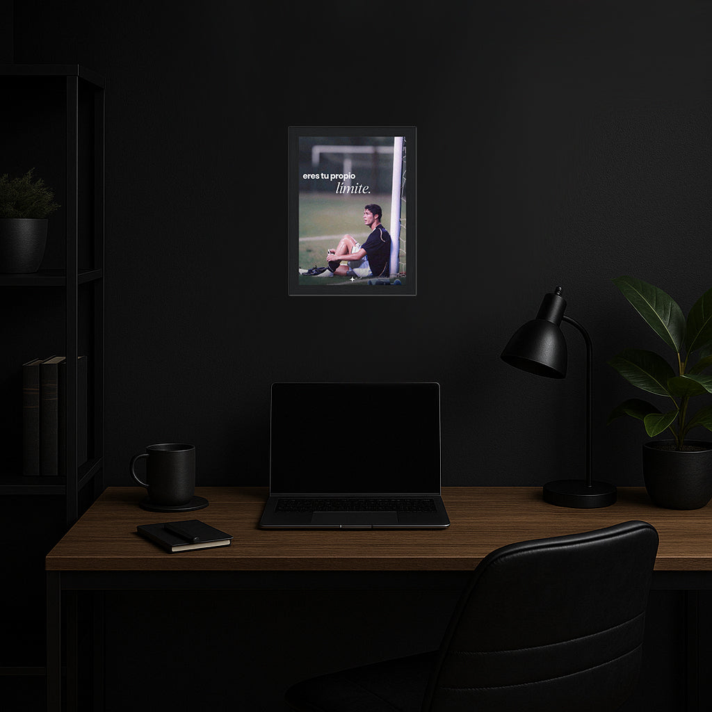 Haz una declaración en cualquier espacio con este póster enmarcado. Impreso en papel mate de alta calidad y enmarcado en madera negra elegante. Ligero, limpio y listo para colgar. Perfecto para recordarte a diario quién estás decidido a ser.