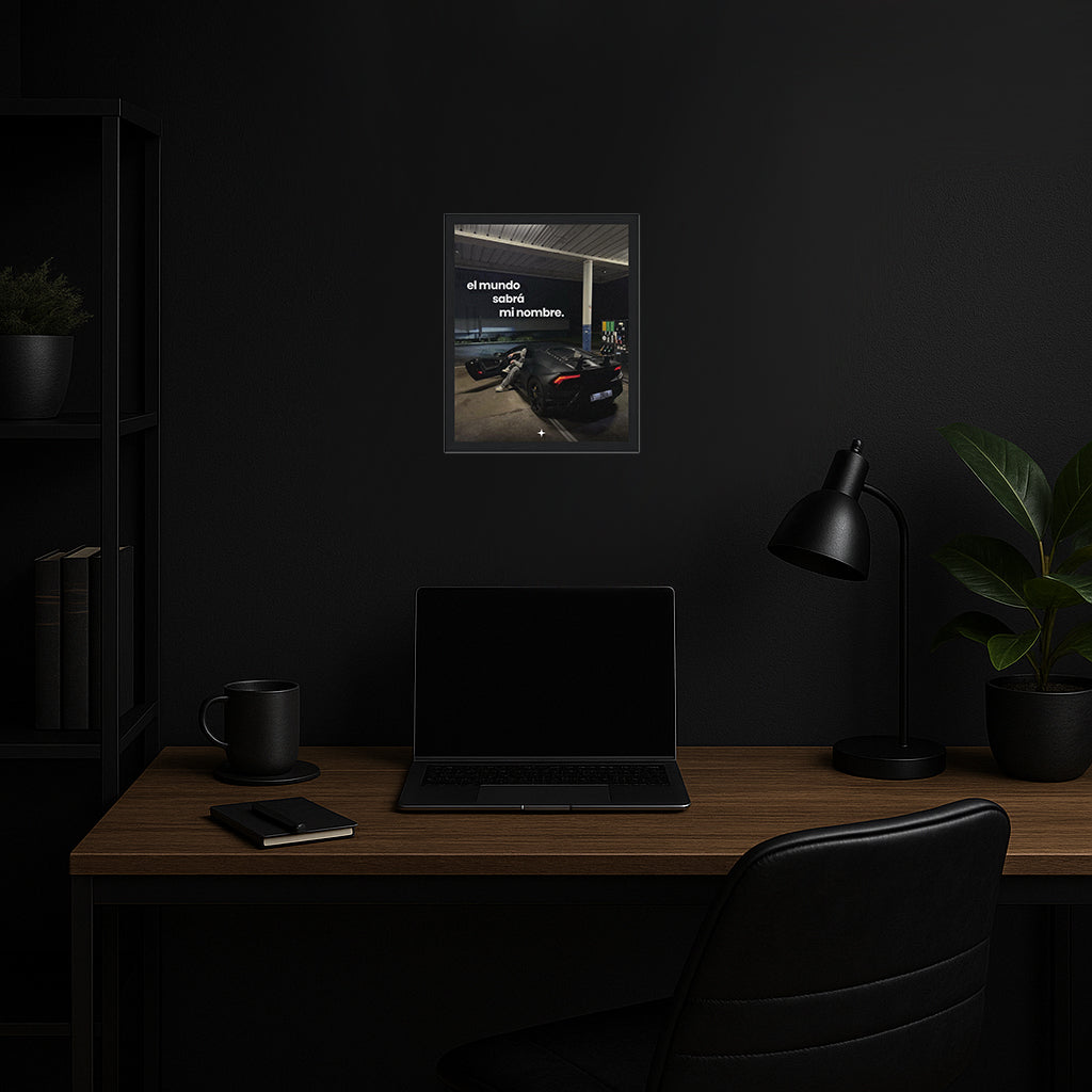 Haz una declaración en cualquier espacio con este póster enmarcado. Impreso en papel mate de alta calidad y enmarcado en madera negra elegante. Ligero, limpio y listo para colgar. Perfecto para recordarte a diario quién estás decidido a ser.